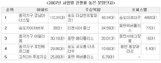 어느 정도 순환을 보이고 있지만 역시 약 보합세에서도 각종 개발호재가 있는 지역이거나 교통호재가 있는 지역이거나 재개발이나 재건축 등의 이슈가 있는 지역의 아파트가격은 오르는 모습을 보였고 청약시장에서도 청약가점제의 시행과 원가연동제에 이은 분양권 전매제한으로 인해서 주춤한 모습을 보이고 있었지만 용인 흥덕지구의 경남아너스빌의 청약 경쟁률이 110.81대 1을 나타내었고 올해 가장 큰 청약 광풍을 불러왔던 인천 송도의 더프라우 오피스텔의 경우에는 무려 4855대 1의 청약경쟁률을 보였다.
