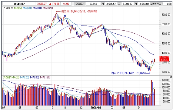![]() ![]() "은행에서 일본펀드 가입하라고 해서 투자했는데 계속 손실입니다!", "중국펀드가 좋다고 해서 넣었더니 석달 만에 30%나 깨졌어요." 2008년 초 서브프라임모기지 사태를 기화로 하여 많은 해외펀드 투자자가 울상이 되었다. 왜 그랬을까? 이는 해외펀드를 고르는 기준이 전혀 없었기 때문이다. 일반적으로 해외펀드는 현재 추세가 어떤지 확인하지 않고 펀드판매직원의 말에 의존하여 가입하는 경우가 많다.하지만 펀드판매직원이 해외펀드의 수익을 확실하게 예상할 수는 없다.대부분 금융기관 내에 배포되는 자료를 이용하여 고객에게 설명해 줄 수 있을 뿐이기 때문이다.그들은 해외펀드의 전문가가 아니다.그렇다면 어떻게 해야 할까? 해외펀드를 선택할 때는 일단 국가별 주요지수를 확인해 보아야 한다. 이러한 국가별 지수는 어디에서 확인할 수 있을까? 일반적으로 증권사 HTS에 들어가 보면 세계 각국의 주요 지수에 대하여 확인할 수 있다. 따라서 펀드판매직원이 어떤 나라의 해외펀드를 추천하면 무조건 가입할 것이 아니라 그 나라의 지수를 한번 확인해 보고 판단하기 바란다. 예컨대 펀드판매직원으로부터 중국펀드를 추천받았다고 가정해 보자. 그러면 중국의 주요지수인 상해종합지수를 확인해 보아야 한다. 대부분의 증권사 HTS에서 상해지수를 찾아 들어가면 아래와 같이 상해지수차트를 확인할 수 있다. 중국의 상해종합지수 차트를 보니 최근 6,124포인트에서 2,990포인트까지 큰 폭으로 하락하였음을 알 수 있다. 그런데 최근 반등에 성공하며 3500포인트 주변까지 올라왔다. 이 차트를 보고 중국펀드에 가입할 것인지 말 것인지를 판단하기 바란다. 차트분석상 3500포인트 부근에서 더 이상 하락하지 않는다면 투자할 만하고, 재차 무너진다면 전저점인 2990포인트를 깨는지 안 깨는지를 확인될 때까지 투자를 보류해야 한다. 펀드판매직원이 금펀드를 추천한다고 해보자. 그러면 덥석 펀드에 가입할 것이 아니라 금관련 차트를 확인해 보라. 금관련 차트를 보니 어떤가? 최근 고공행진을 하다가 급락하고 있다. 그렇다면 일단 금펀드가입을 보류해야 한다. 상승추세가 무너지면서 상투에서 매수할 가능성도 있기 때문이다. 이런 때는 투자하지 않는 것이 원칙이나 설령 투자한다고 해도 여유자금 중 소액만 투자해 보고 다시 상승하는 것이 확인된 후 추가투자 여부를 결정하면 된다. 해외펀드는 앞서 언급한대로 투자내역을 봐도 제대로 판단하기가 힘들다. 왜냐하면 우리가 외국의 주식이나 자산에 대한 정보가 부족하고 더욱이 향후 전망을 예측하기란 더더욱 힘들기 때문이다. 그래서 관심 있는 해외펀드는 관련 지수차트를 보고 결정하는 것이 유리하다. 해당 지수차트를 본다고 해도 투자내역이나 투자종목의 기본적 분석은 불가능하다. 하지만 관련지수가 올라가고 있는지 내려가고 있는지를 알면 일단 투자판단이 명확해진다. 이러한 해외펀드 관련 지표나 지수차트는 증권사 HTS 외에도 머니투데이, 팍스넷, 씽크풀 등 금융사이트에 나와 있다. 일단위/주단위/월단위 등으로 표시되어 있고, 추세를 알 수 있는 이동평균선이나 세부적인 캔들의 모습도 파악할 수 있다. 이러한 내용을 정확히 파악하려면 주식투자시 이용하는 기술적분석을 공부하는 것이 좋다. 주식투자의 매매타이밍을 포착할 때 이용하는 기술적분석을 잘 할 줄 알면 해외지수차트도 정확히 볼 수 있기 때문이다. 어떤 모습의 지수차트를 선택할 것인가? 지수차트의 모습이 상승하고 있는 해외펀드를 선택해야 한다. 그리하면 고점(상투)에서 해외펀드에 투자하는 잘못을 저지르지 않을 것이다. 하지만 일반 초보투자자는 지수차트를 봐도 판단이 잘 서지 않을 수 있을 것이다. 그러면 증권사 직원을 활용하라. 이들은 차트분석의 전문가들이다. 해외펀드 가입자도 펀드수수료를 내기 때문에 금융직원의 서비스를 받을 권리가 있다. 증권사의 차트전문가를 잘 활용하면 좋은 해외펀드를 선택하는데 큰 도움이 될 것이다. [송영욱 '샐러리맨 부자만들기' 저자 / 새빛에듀넷 이사]