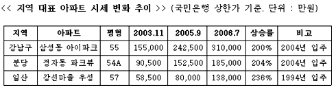 경제 현상을 이해하기 위한 방법이 여러 가지 있는데, 그중 대표적인 것 중의 하나가 바로 ‘희소성’의 원리이다. 희소성의 원리란 말 그대로 ‘가격은 수요와 공급의 원리에 의해 결정되므로, 드문 것은 가격이 비싸지고 반면에 흔한 것은 싸진다.’는 의미이다. 만약 당신이 직장인이라면 자신이 하고 있는 일이 희소성과 가치가 높으면 다른 사람에 비해 승진도 빠를 것이고 대우도 좋을 것이다. 또한 의사, 변호사 같은 전문 직종이 다른 일반 직장인보다 많은 돈을 받는 것 역시 상대적으로 다른 직종에 종사하는 사람들보다 부가가치가 높은 일을 하며 전문 자격증을 취득해야만 그 일을 할 수 있는 자격이 주어지는 진입장벽이 있기 때문이다. 부동산 역시 이 희소성의 원리가 그대로 적용이 된다. 위치가 비슷하다고 하더라도 입지가 좋은 부동산은 그렇지 못한 부동산보다 훨씬 비싸기 마련이다. 현재 우리나라 주택 시장을 주도하고 있는 아파트 역시 예외가 아니어서 길 하나 차이로 가격이 2배 이상 벌어지기도 한다.(예 : 목동 신시가지와 주변 아파트, 일산신도시와 주변 택지지구 아파트 등) 이런 측면에서 강남구, 분당, 일산신도시 3곳의 가격 선도 아파트들의 특징을 통해 이 희소성의 원리가 가격에 어떻게 적용되는지 살펴보는 것도-비록 현재는 내가 이런 아파트들을 살 여력이 없다고 하더라도-부동산 시장을 이해하는 데 큰 도움이 되리라 생각한다. 강남구 : 삼성동 아이파크(현재 우리나라 최고가 아파트) 2004년 5월 입주. 55/59/63/65/73평형. 449세대. 23~46층 1. 구릉 지대에 위치해 일부 동에서 한강과 남산 조망이 가능하고, 단지 내 녹지 공간 풍부해 쾌적함 2. 7호선 청담역과 2호선 삼성역이 도보 10분 거리에 위치 3. 봉은초/중학교, 경기고등학교 위치 4. 단지가 대형 평형으로만 구성되어 있음 5. 초고층 새 아파트 6. 55평 분양가 : 76,230만원(평당 1,386만원) 7. 63평 최고가 매물 시세(국민은행) : 300,000만원(평당 5,455만원)으로 강남구 평균 시세 3,037만원의 1.8배, 삼성동 시세 평균인 2,385만원보다 2.3배 높은 가격임. 분양가 대비 최고가는 평당 3.94배 상승했음 8. 최초 분양 당시 고분양가로 미분양이 나서 분양가를 인하하여 재분양한 곳임 * 분당 : 정자동 파크뷰(분당 최고가 아파트) 2004년 6월 입주. 33/48/54A·B/63/71/78/95평형. 1,829세대. 30~35층 1. 일부 동에서 탄천과 청계산 조망 가능 2. 분당선 정자역 도보 10분 3. 단지 인근 초등학교, 고등학교 4. 중대형 평형으로만 구성 5. 초고층 대단지 새 아파트 6. 54A평 분양가 : 46,000만원(평당 852만원) 7. 54A평 최고가 매물 시세(국민은행) : 215,000만원(3,981만원). 정자동 평균 시세인 1,519만원보다 2.62배 높은 가격임. 분양가 대비 최고가는 평당 4.67배 상승했음 8. 2001년 3월 분양 당시 특혜 분양과 고분양가로 논란이 되었던 곳 * 일산신도시 : 강선마을 우성아파트(일산 최고가 아파트) 1994년 3월 입주. 37/44/49/57평형. 412세대. 15~25층 1. 일부 동에서 호수공원, 노래하는 분수대, 한강, 김포까지 조망 가능 (일산신도시 최고의 조망권) 2. 일산선 주엽역 도보 5분 3. 단지 인근 초등학교, 중학교 4. 중대형 평형으로만 구성 5. 입주 12년차 중고 아파트 6. 57평 분양가 : 13,223만원(평당 232만원) 7. 57평 최고가 매물 시세(국민은행) : 180,000만원(3,158만원). 주엽동 평균 시세인 1,003만원보다 3.15배 높은 가격이며 일산 50평형대 중간층 평균 가격인 9~11억 보다 월등히 높은 가격임. 분양가 대비 최고가는 평당 13.6배 상승했음. 8. 단지 건너편으로 한류우드(35만평), 제 2자유로, 아쿠아리움, 백화점 등이 들어설 예정이어서 향후 개발 압력 높은 곳임 ![]() 예를 든 세 지역 모두 뛰어난 ‘조망권’이 다른 아파트와 차별성을 띄는 가장 큰 요인이며, 희소성의 원리라는 측면에서 바라볼 때 이들 아파트들의 지역 선도 현상은 앞으로도 계속될 것으로 전망되며, 지역 내 타 아파트와의 가격 격차도 더 벌어질 가능성이 높다.