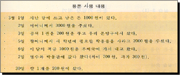 전편에서 말씀 드린 용돈기입장 작성방법과 나의 용돈관리 경제지수(EQ)에 관하여 말씀 드리고자 한다.