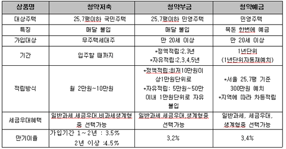 내년이 결혼인데 아직 청약통장하나 없는건 말이 안된다. 그러므로 지금 은행에가서 청약통장을 만들어라. 청약통장은 3가지가 있다. 청약저축, 청약부금, 청약예금 다 각기 약간씩 틀리다.