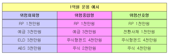 방송에선 투자 성향에 따라 1억원을 운용하는 상품과 금액을 다르게 제시했습니다.